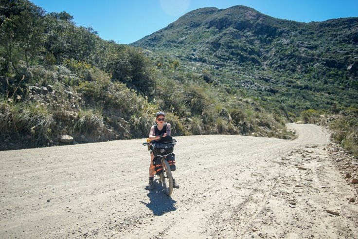 The next morning, resigned to the fact the only way out is on our bikes, we hit the road. We’re in a lot better spirits than the day before. After the initial grind to get out of the town, the gravel road settles into a 7% gradient which we can both cycle in our lowest gear. It’s a bit painstaking, but we make progress.