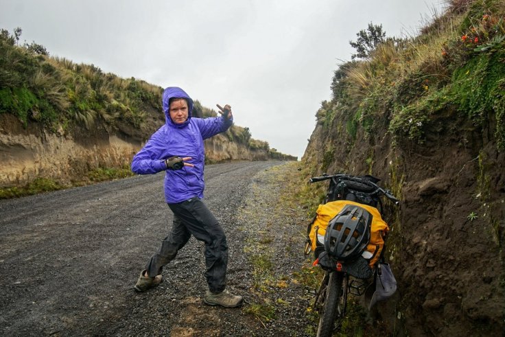 We soon realised that wasn’t going to work either and decided it was best to head back the way we came. 40km downhill took a couple of hours. It had taken us two days to get here. We would have to resort to foggy views of Cotopaxi from the highway.