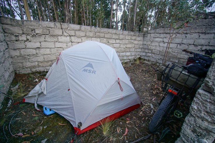The climb was hard and steep. We were trying to make it to Quilotoa in one go, but ran out of gas 20km from the destination. We found a concrete walled shelter to sleep for the night, protected from the wind.