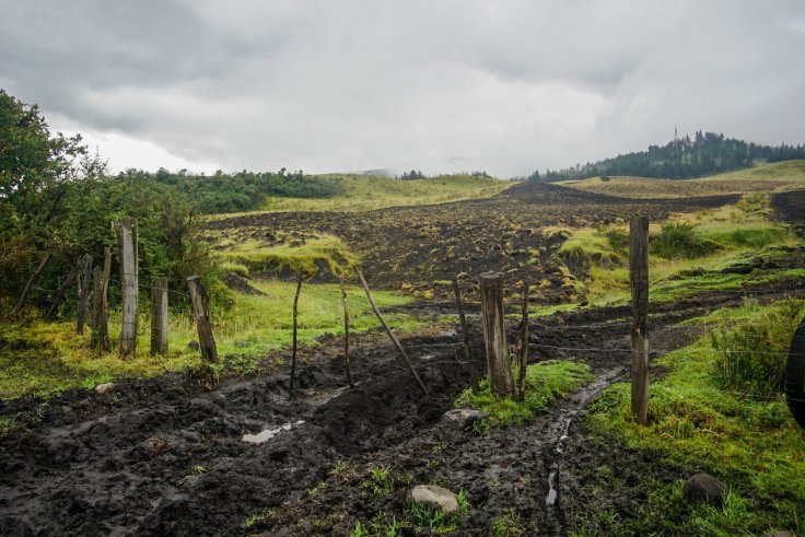 We got to a fork in the road where either direction consisted of 12″ of sticky, unrideable mud. We spent a couple hours trying to push our way through one way only to make it a kilometer or two. Exhausted, we turned back toward a dairy farm we had passed at the fork and asked to camp the night. We spent a soggy night cold and wet but optimistic we could detour around the mess and onwards to our destination of Cotopaxi volcano.